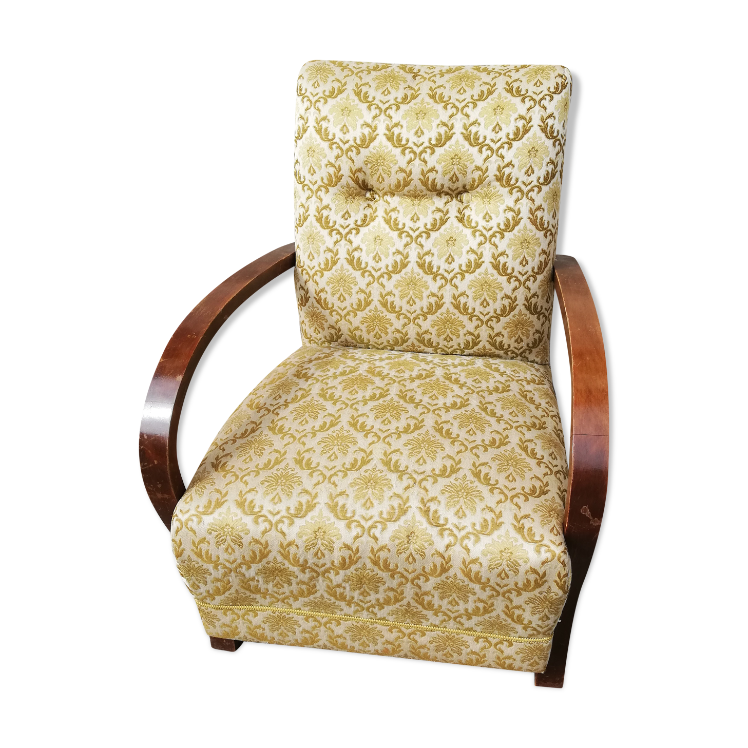 Antique armchair chairs living room wooden nut spool fabric floral 800 xix.
